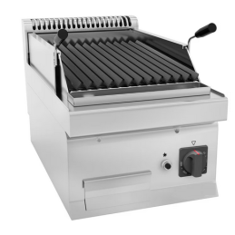Dessus lisseStructure entièrement réalisée en inox AISI 304Plaque de cuisson épaisseur 15 mm en inox3 rebords anti-éclaboussures en inox AISI 3043 zones de chauffe de 5,4 kW chacuneÉléments chauffants installés directement sous la plancha5 évidements dans le plan pour les déchets de cuisson2 tiroirs extractibles de récupération des graisses et déchets de...
