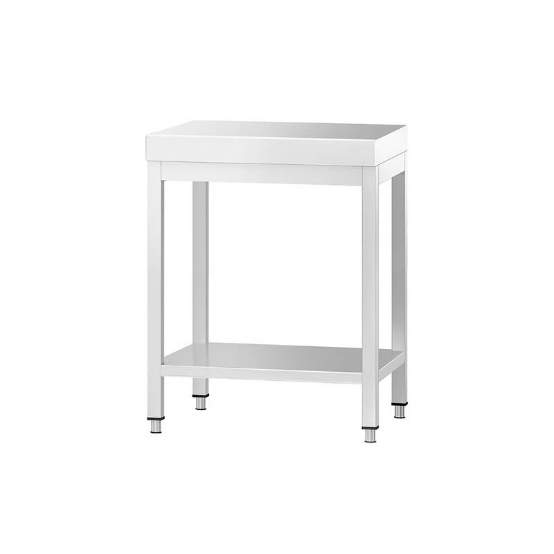 Table de travail professionnelle, en inox, 140cm de long, avec rebord, avec tablette inférieure et très facile à nettoyer. Ce produit est livré sous 8 jours