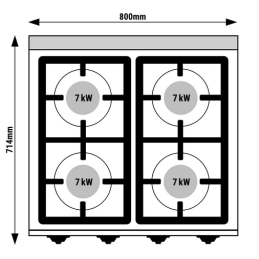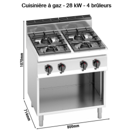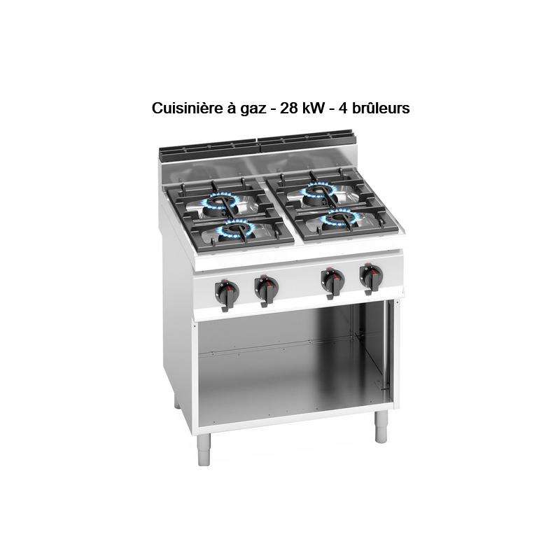 Fourneau à gaz avec 4 zones de cuisson pour les professionnels de la restauration CHR : cafés, hôtels et restaurants. Afin de satisfaire tout type d’établissement et de débit, notre équipement professionnel de qualité vous permettra de réussir à coup sûr tous vos plats. Le revêtement inox utilisé par les fabricants permet à vos cuisiniers et commis de travailler dans les meilleures conditions, et de gagner du temps en fin de service lors du nettoyage des cuisines.