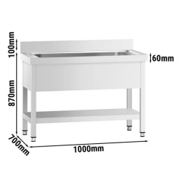 Plonge avec étagère inférieure et dosseret. Égouttoir à gauche ou à droite