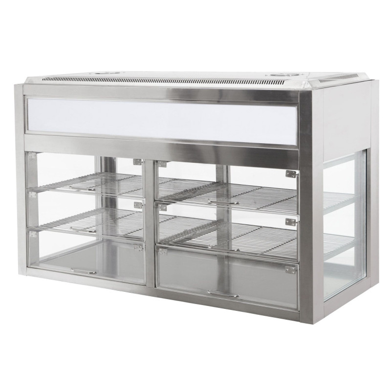 Vitrines réfrigérées pour présenter de manière attrayante les gâteaux, pâtisseries, sandwichs et autres produits alimentaires. Étagères réglables et dégivrage automatique. Une température constante est assurée par le système de refroidissement par ventilateur et le verre dispose d'un chauffage électrique pour minimiser la condensation. Éclairage néon....