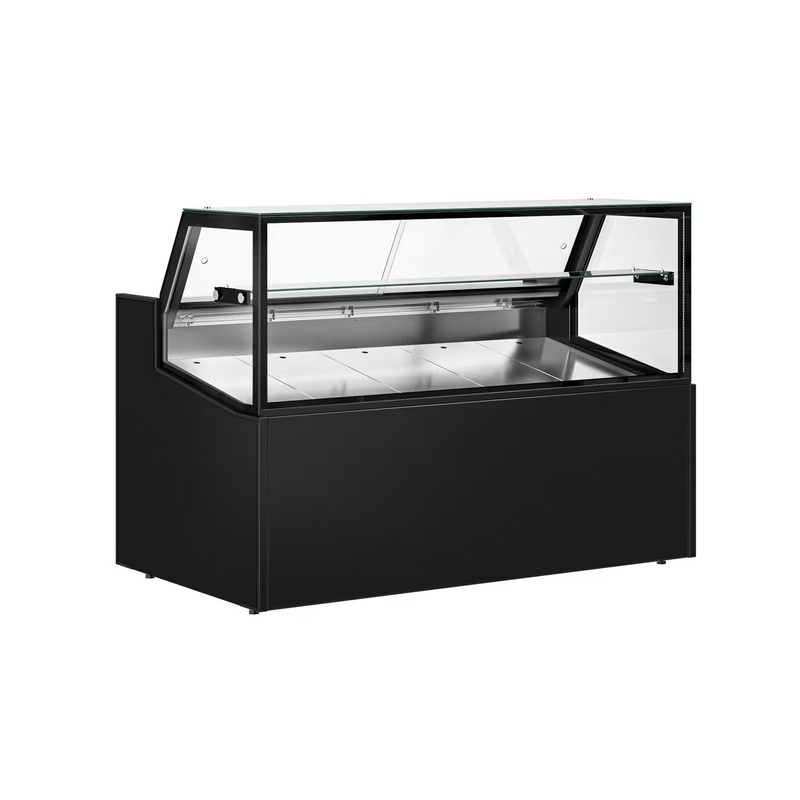 Cette vitrine a de nombreux atouts, elle est équipée d'une réserve réfrigérée à l'arrière, très pratique pour stocker vos produits frais. Ses vitres avant plates et panoramiques donnent l'avantage d'une présentation encore meilleure des produits.