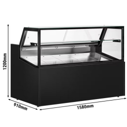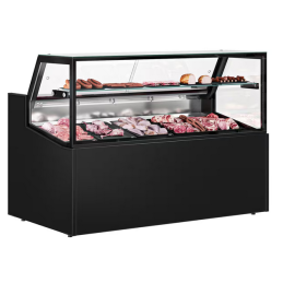 Vitrine réfrigérée attrayante de 1M58 de large avec son service-arrière, qui vous permettra de présenter viandes, charcuteries, denrées alimentaires diverses, fruits ou encore des boissons.