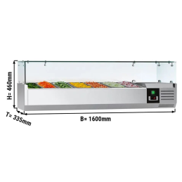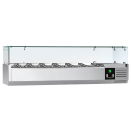 Saladette réfrigérée à poser équipée de verre de protection pouvant contenir 7 x bacs GN 1/4.