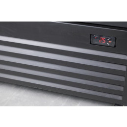 Vitrine ouverte avec rideau de nuit, elle est munie d’un thermostat électronique à affichage digital et d’un groupe logé.