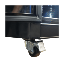 Élégante armoire réfrigérée avec porte vitrée pour une bonne présentation de tous vos produits. Idéale à déplacer grâce à ses roulettes, son éclairage intérieur permet une bonne visibilité de vos marchandises. Cette vitrine est nécessaire pour tous commerces d'alimentation.